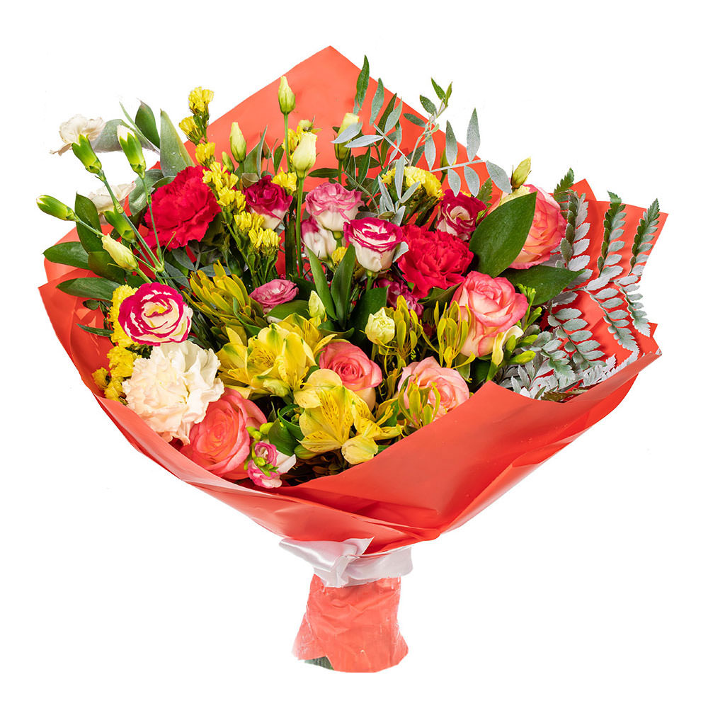 | Состав | Альстромерии, Гвоздики, Розы, Эустомы |