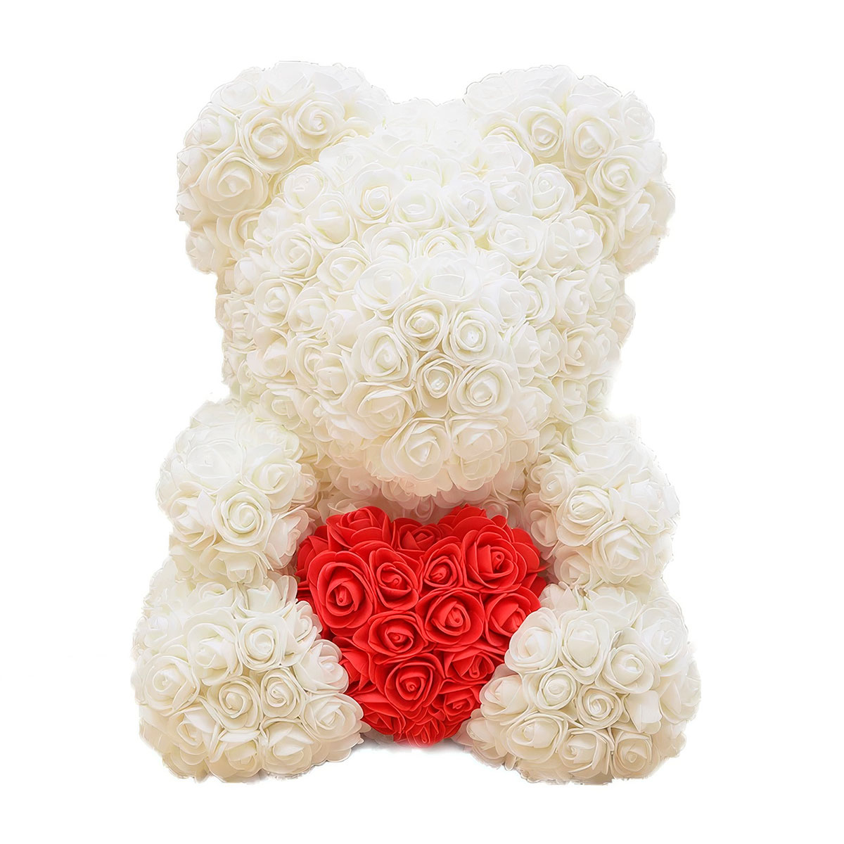 Мишка из роз бежевый с красным сердцем (40 см) с доставкой по г Городец: вы можете заказать подарок в интернет магазине «Флормания» по цене за 3990 руб.