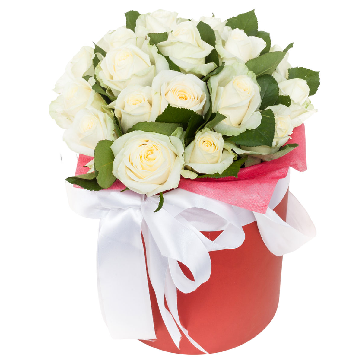 Роза одноголовая белая. Упаковка (шляпная коробка, квадратный бокс, коробка сердце, оазис)