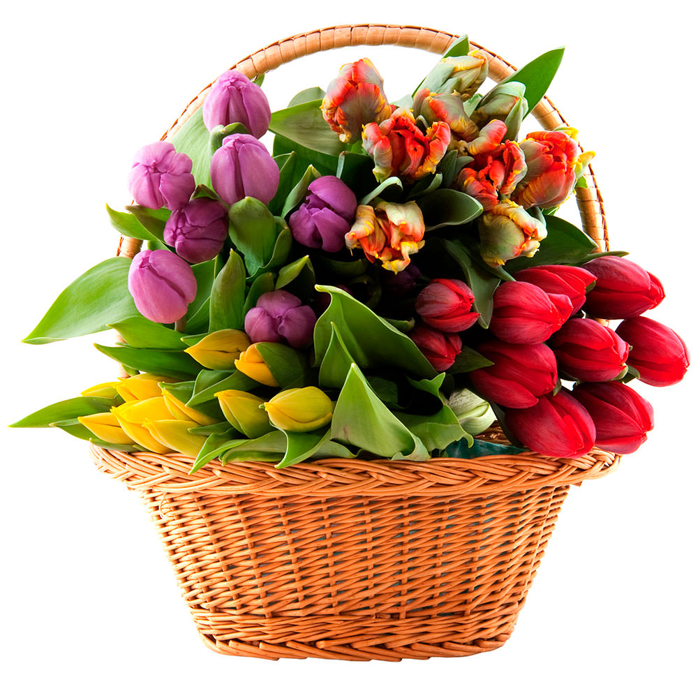 Цветы в корзинке «Микс тюльпанов» с доставкой по г Городец: вы можете купить букет в интернет-салоне цветов «Флормания» по цене от 3490 руб.